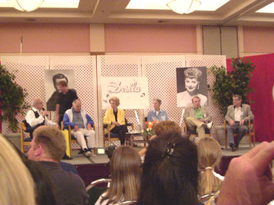 | The panel for the first discussion, about Desilu Studios, included from left, convention organizer Tom Watson, "I Love Lucy" film editor Dann Cahn, writer Madelyn Pugh Davis; Lucy's cousin Cleo Smith; studio business affairs executive Bernie Weitzman and attorney Ed Perlstein. |