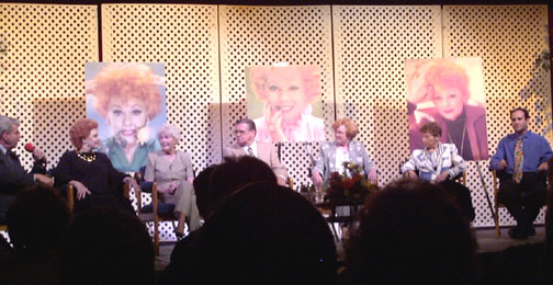 | Featured to talk about Lucy up-and-personal were, from friends from left, Richard Brock, actress Carole Cook, Mrs. Fred (Zo) Ball, Lucy's personal assistant Frank Gorey, Lucy's longtime personal secretary Wanda Clark, Lucy's hairdresser Irma Kusely, and number-one fan Michael Stern. |