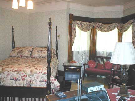 The bed was like, 4 feet high. To get into it, there was a little step stool thingy next to it. There was a little sitting area in a bay window, and other chairs around. It was air conditioned and had a tv. |