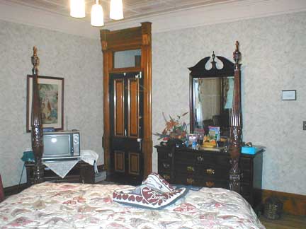 Our room also was connected to a bathroom which we had to share with the girls down the hall. Our key would lock the bathroom on our side and the girls would have a key to the outer door leading to the hallway, but not our door from the bathroom. See the little sign on the wall on the far right of the picture...? |