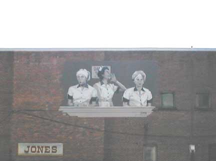 This is a mural painted on the side of a building. You can see this from Third St.