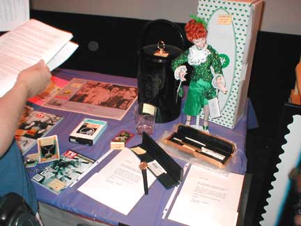 Lot #43- "MAME 8-TRACK CAST RECORDING Lot #56- "DESILU SALES" LETTER OPENER Lot #57- LUCILLE BALL PRODUCTIONS DRINKING GLASS Lot #58- LUCILLE BALL PRODUCTIONS ICE BUCKET Lot #59 SALLY SWEET DOLL Lot #60- LUCY WATCH |