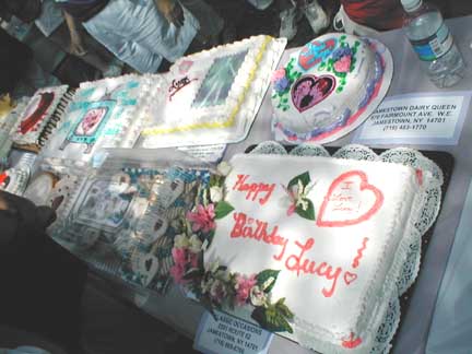 After the Trivia Contest, there was LUCY'S BIRTHDAY CAKE BAKE-OFF just outside of The Reg Lenna Civic Center. Local bakeries, supermarkets, and caterers enter the fourth annual competition celebrating the birthday of the Queen of Comedy. Birthday cake for everyone. |