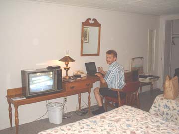 Once we got into our Motel room, Michael couldn't wait to get on the laptop to check email.