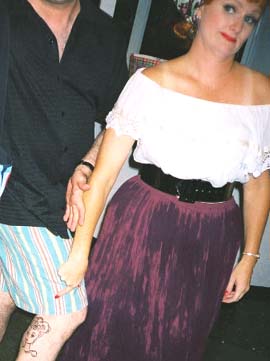 Lucy was impressed with Glen's tattoo on the back of his leg. See, she's pointing to it.