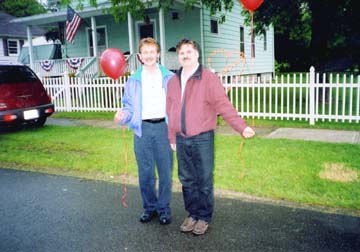 There we are with our balloons we got at the Fan Reunion. Still in front of Lucy's house.