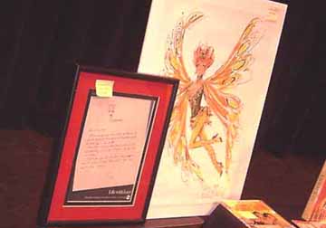 LUCILLE BALL BUTTERFLY COSTUME SKETCH: This color costume sketch print depicts Lucille Ball as a redheaded butterfly. The signature of famed costume designer Bob Mackie appears on the lower right hand corner of the print. Dated 1965. (this is not the original sketch). Opening bid $80 sold for $90.