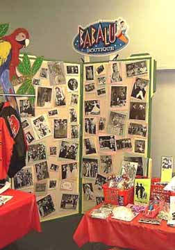 This is a picture of the backboard that was standing inside the collectors' show room. It was behind a table set up with all kinds of costume stuff you can buy to wear for the Masquerade Ball if you didn't have anything. Stuff included were plastic glasses, mustaches, necklaces, rings, wigs, etc... The backboard had all kinds of pictures from scenes of I Love Lucy that may be copied for costume ideas.