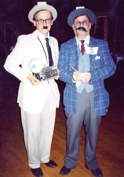 Gee, who are these characters? Why that's Mike and Glen. Mike was Ethel dressed as Sam, the photographer, and Glen was Lucy dressed as Pete, the reporter so they can crash Ricky's Daddy shower in "Ricky Has Labor Pains". And boy, what they did to look like that....