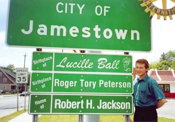 Monday, May 26 On the way out of town, Mike stopped to pose next to this sign. Who's Roger Tory Peterson? Who's Robert H. Jackson? Who cares?
