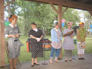 Lucy Lookalikes at the Fan Reunion - Friday - the lady with the gigantic slice of bread was the winner - and lady on the left gave a wonda-full "Vitameatavegamin" performance: she's even wearing the dress!