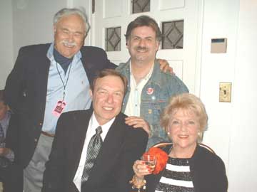 Glen with Dann Cahn, Steve Kay and Doris 'Carolyn Appleby' Singleton. "I guess they're all at Little RICKY's party, but where's Superman?? Actually, this is at the private party held for Jim Bailey and Lucie Arnaz".