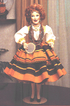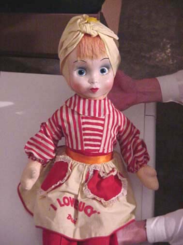 - Lucy - 16" tall dressed in black shorts, tail coat, top hat, red tie & red cumber bun