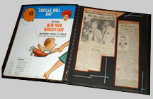 scrapbook of Lucy's visit to the 1964 New York Worlds Fair. It has photos, newspaper articles, her press passes, a day's schedule for her, a souvenir booklet, even plane tickets for her and Gary.