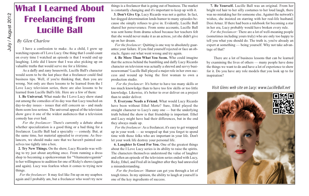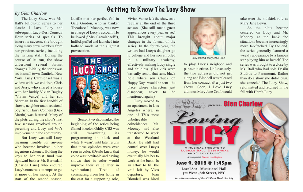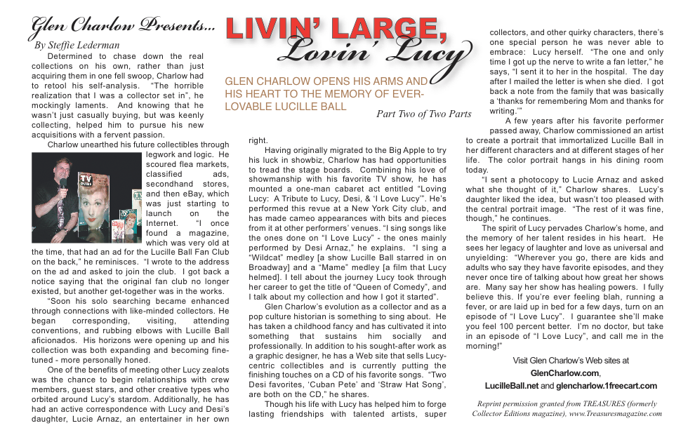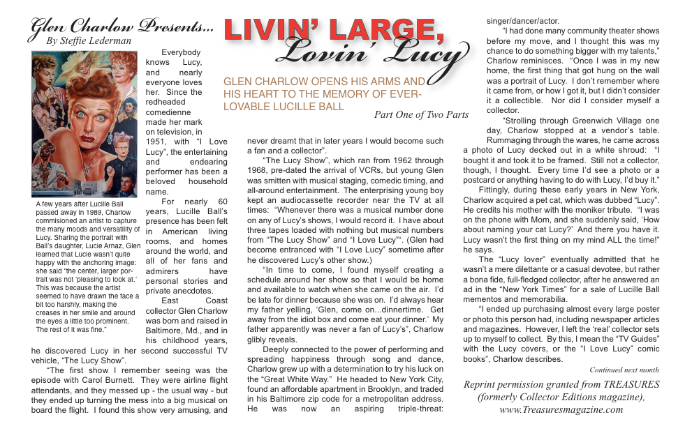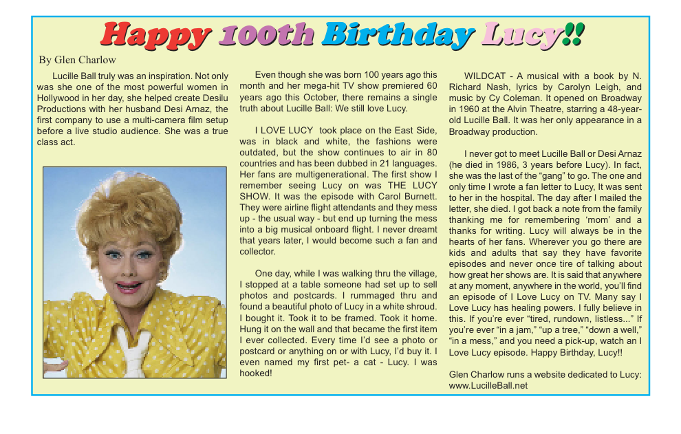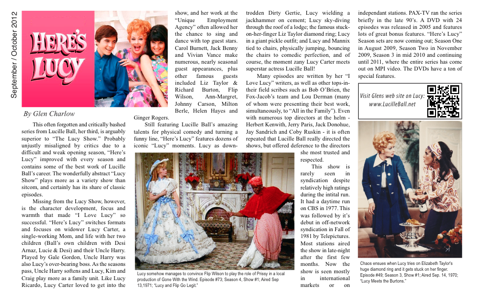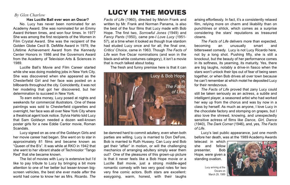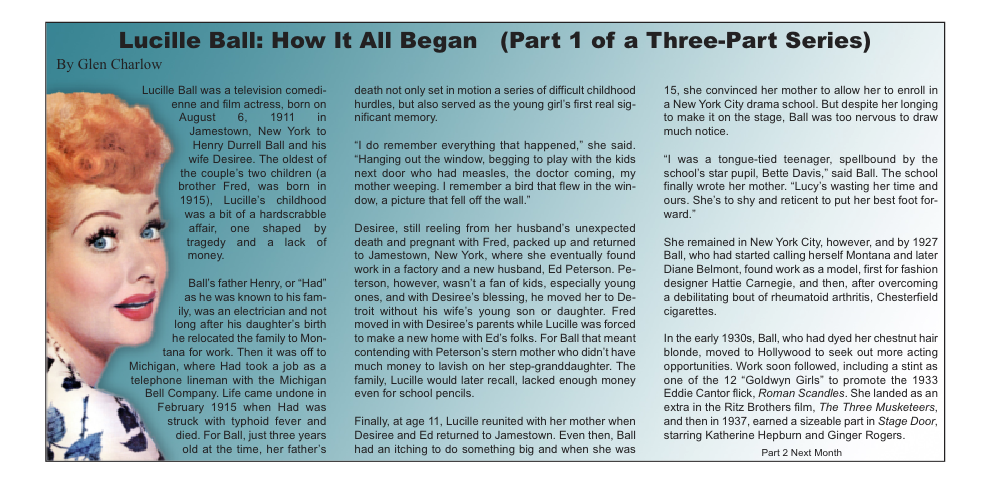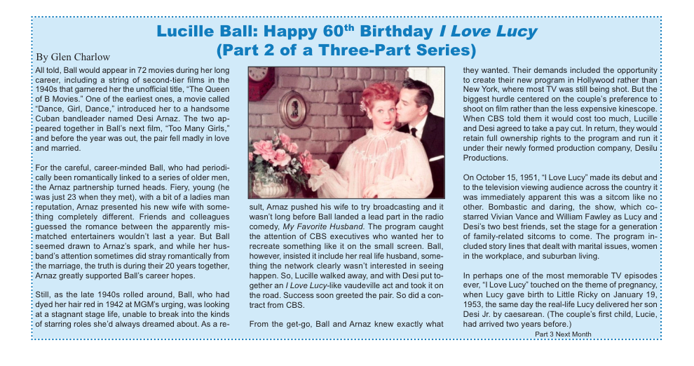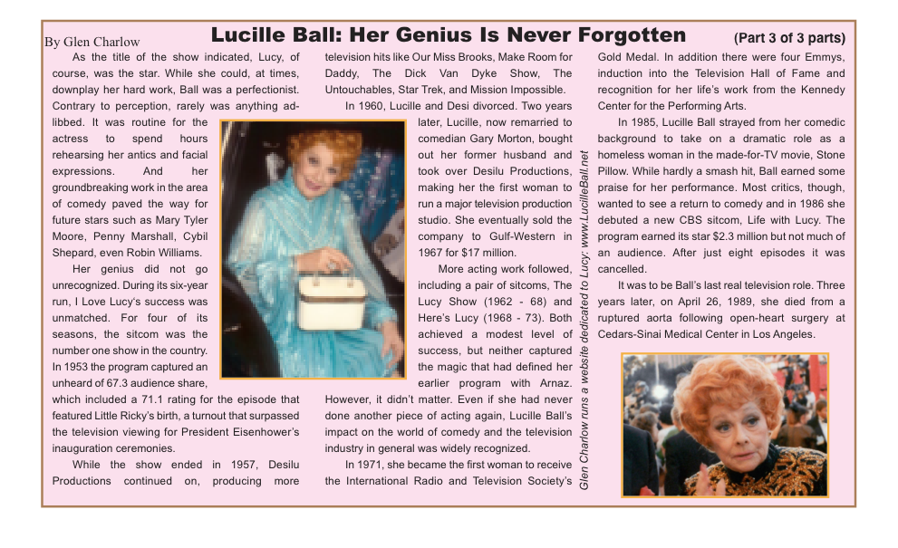 ARCHIVE OF LUCILLE BALL ARTICLES BY GLEN CHARLOW THAT APPEAR IN THE PRINTED ISSUES.